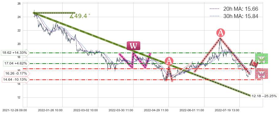 ♞ 20小时均线:15.66,30小时均线:15.84→ 快线<慢线