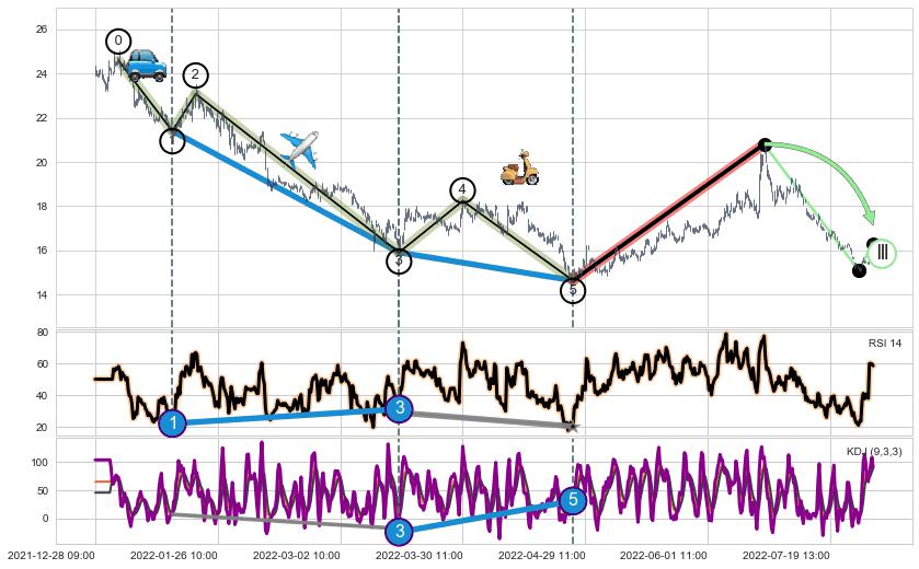 | 7 🅚:吊颈线(上吊线) ➕ 🌊:波浪理论下跌5浪延续:猜想C点强阻力小反弹终止,猜想保持下跌5浪方向下行(均值回复后大周期继续趋势跟踪) ☞ 看空信号 ⇥ 【🅚线】交织【图形】⇥ 综合量化分数: 46 | > |