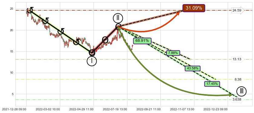 ➣ 大趋势循环浪继续向下概率68.91%