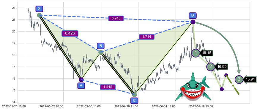 ➣ 已完成【鲨鱼】形态起点X: 02-11:11, 终点D: 06-15:13, 共411交易小时