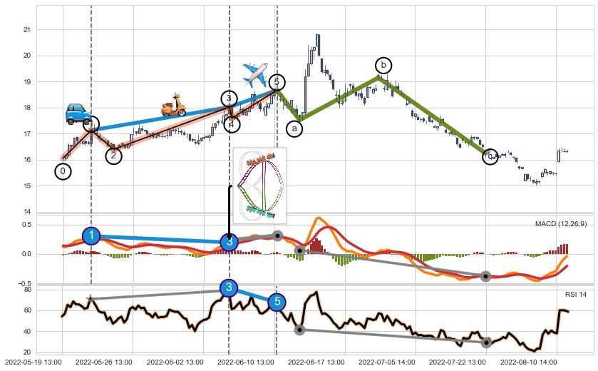 ➢ a,c调整浪MACD, RSI, KDJ走势都【未出现】背离,abc走势延续, 5浪反转概率增强