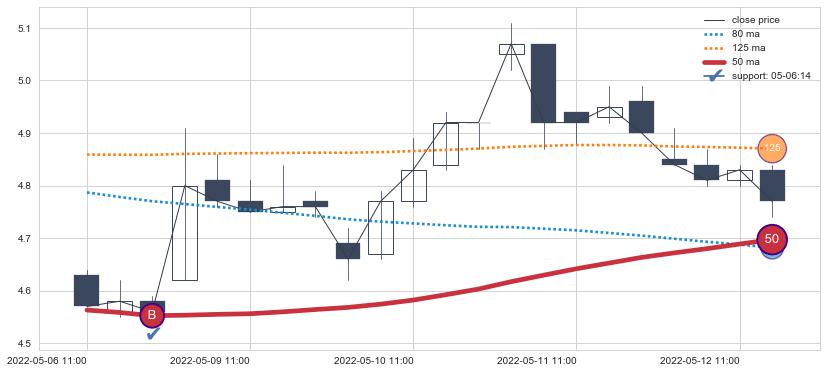 上涨趋势05-06 11:00-05-12 13:00,均线50确认关键支撑1处