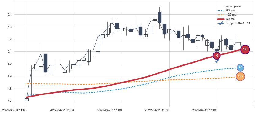 上涨趋势03-30 11:00-04-14 11:00,均线50确认关键支撑1处