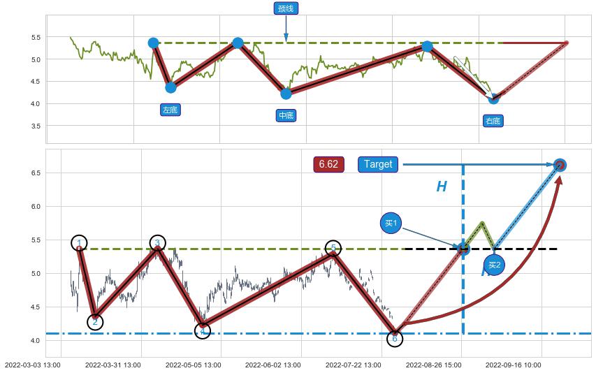 ➢ 图示②④⑥三个波谷均在 5.36 附近成功获得【支撑】→反弹上涨
