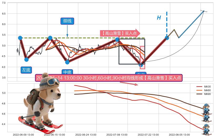 | 8 🅚:上涨镊子线(U形磁铁) ➕ 🎢:【高山滑雪】买入点均线组合买入点信号形成后,猜想后续下行结束,持续反弹上涨(均值回复) ☞ 看多信号 ⇥ 【均线】交织【🅚线】⇥ 综合量化分数: 60 | > |