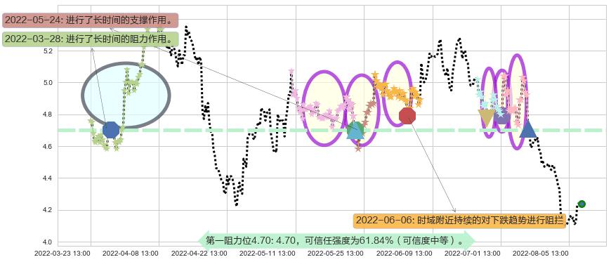 ♘ 阻力价格位4.70,可信任强度61.84%,距离最后交易2022-08-12 14:00形成的收盘价格4.24相差 +10.89%