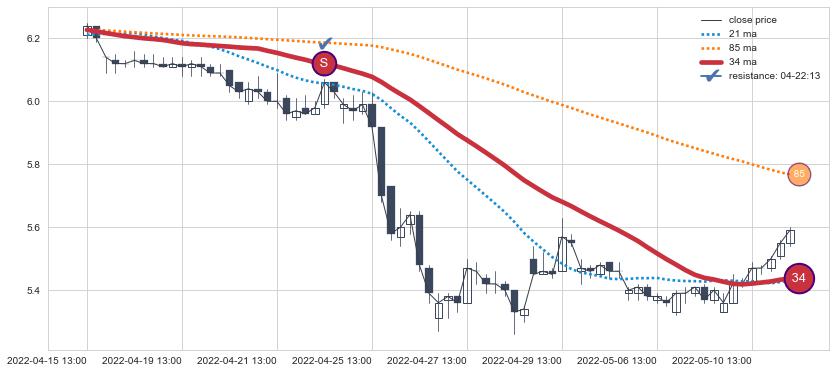 ⚂ 2022-06-30 13:00:00小时突然冒出一根大阴线,一下子下穿三条均线且收盘价收在各条均线之下