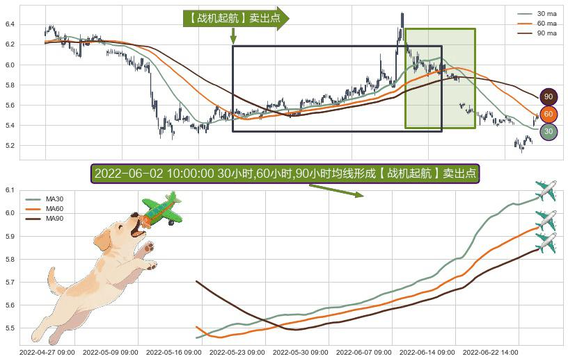 ⚀ 2022-05-13 13:00:00小时-2022-06-28 14:00:00小时显现 30小时-60小时-90小时均线 【战机起航】卖出点 看空信号,后市看跌,卖出