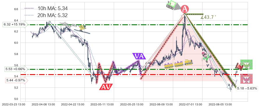 ♘ 阻力价格位5.53,可信任强度67.56%,距离最后交易2022-08-12 14:00形成的收盘价格5.49相差 +0.66%