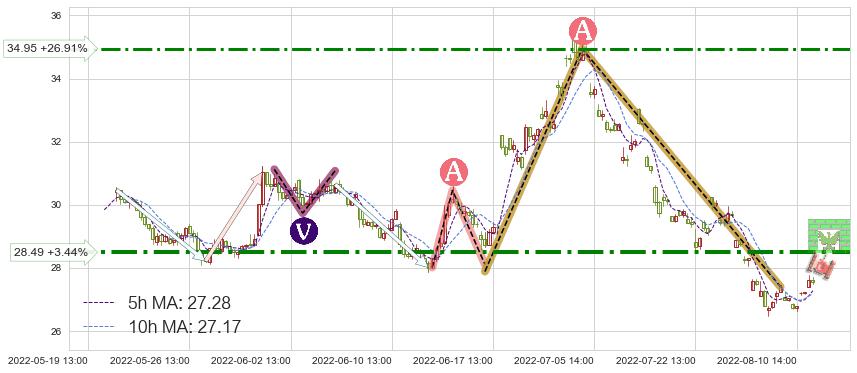♘ 阻力价格位28.49,可信任强度82.72%,距离最后交易2022-08-12 14:00形成的收盘价格27.54相差 +3.44%