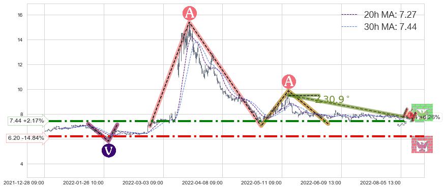 ♞ 20小时均线:7.27,30小时均线:7.44→ 快线<慢线