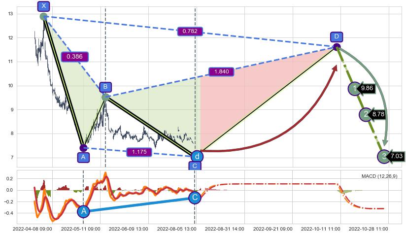 ➢ 谐波价格A点比C点高 ⤴,【MACD】指标A点比C点低 ⤵️