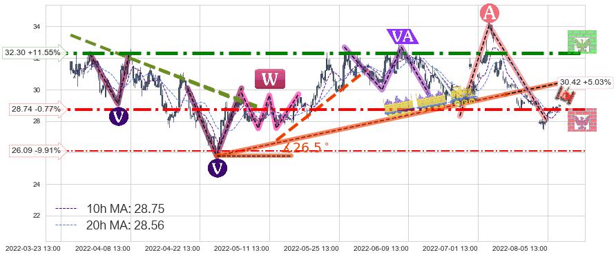 ♘ 阻力价格位32.30,可信任强度95.04%,距离最后交易2022-08-12 14:00形成的收盘价格28.96相差 +11.55%