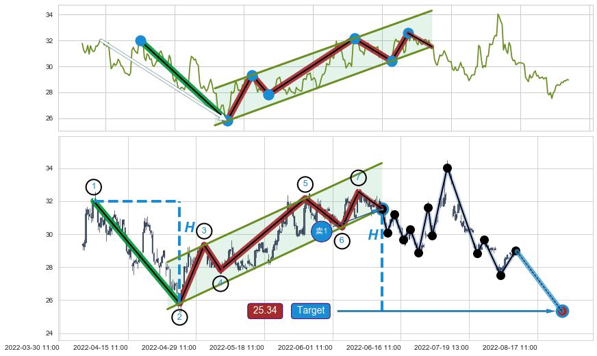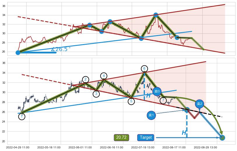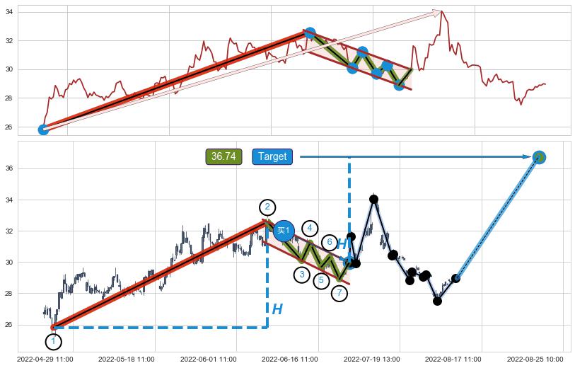 ➣ 最小中继整理涨幅→𝐇: 6.77 (𝐇旗杆的长度:旗杆起点→顶点)