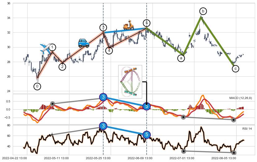 ➢ a,c调整浪MACD, RSI, KDJ走势都【未出现】背离,abc走势延续, 5浪反转概率增强