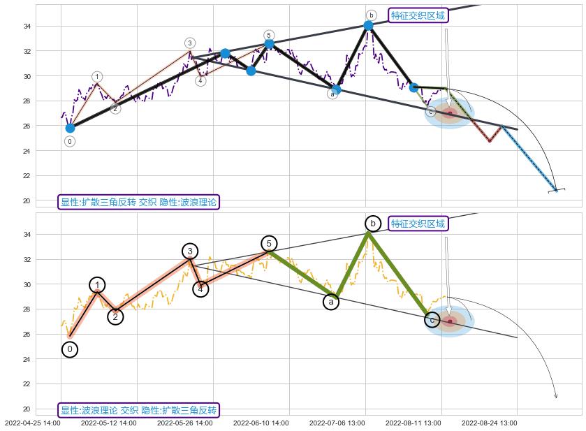| 2 ☯️:缠论买卖点3卖临近破位后继续下跌 ➕ 📐:扩散三角反转临近支撑猜想转换阻力下跌 ☞ 看空信号 ⇥ 【图形】交织【图形】⇥ 综合量化分数: 35 | > |