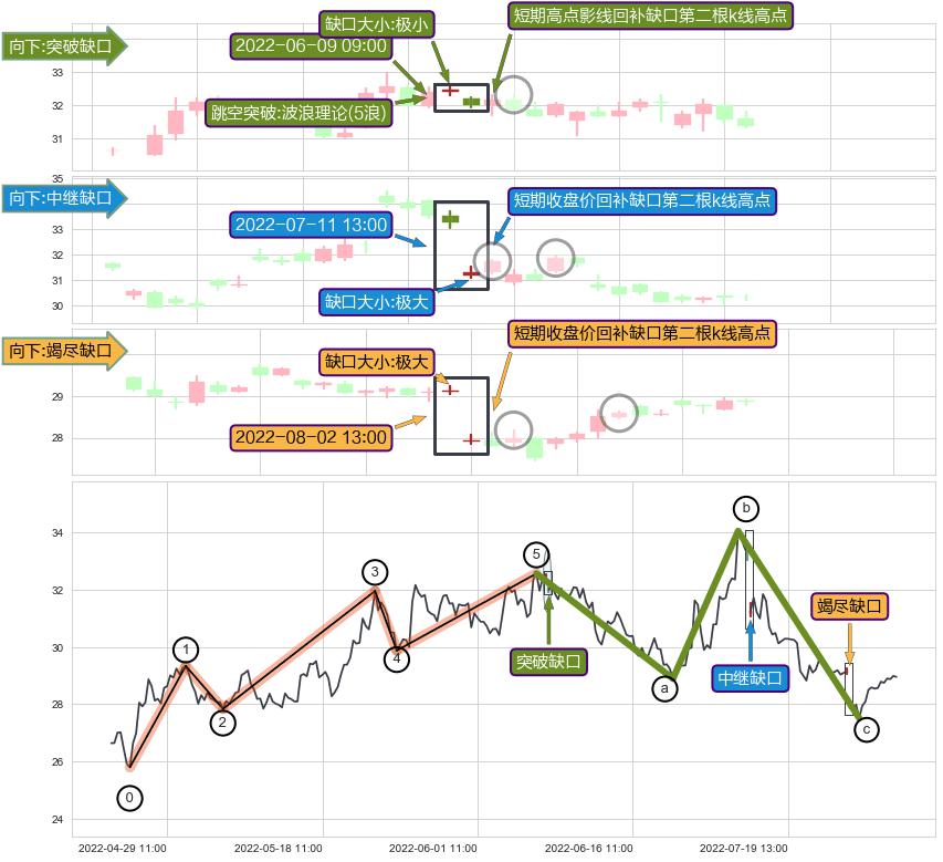 ➢ 2022-08-02 13:00形成:向下跳空【竭尽】缺口