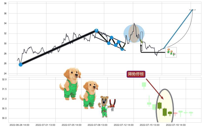 ➣ 收盘价(07-22:14: 29.36 )→回踩→第一根k线低点(07-21:14: 29.00 )