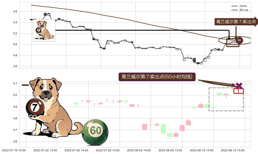 ⚀ 2022-08-12 14:00:00-小时显现 葛兰威尔均线 60小时均线 第⑦卖出点 下降趋势的中继信号,后市看跌,卖出信号