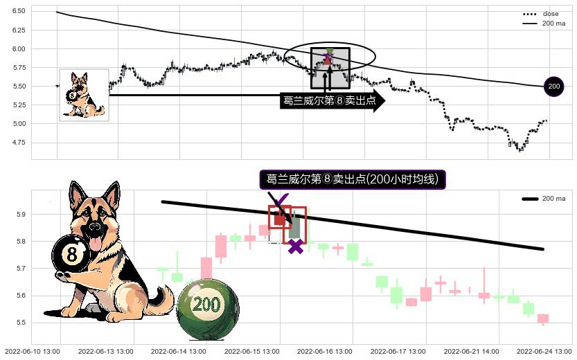 ⚀ 2022-06-15 14:00:00-小时显现 葛兰威尔均线 200小时均线 第⑧卖出点 下降趋势的中继信号,后市看跌,卖出信号
