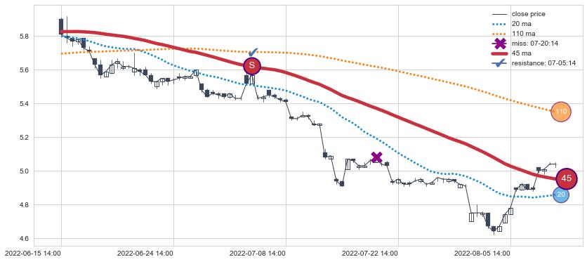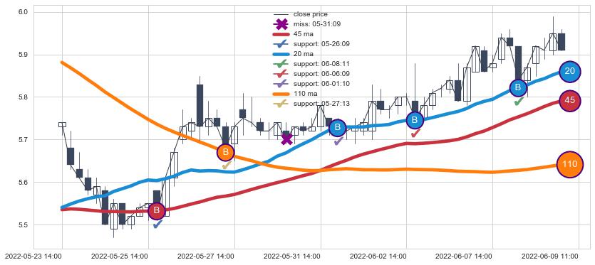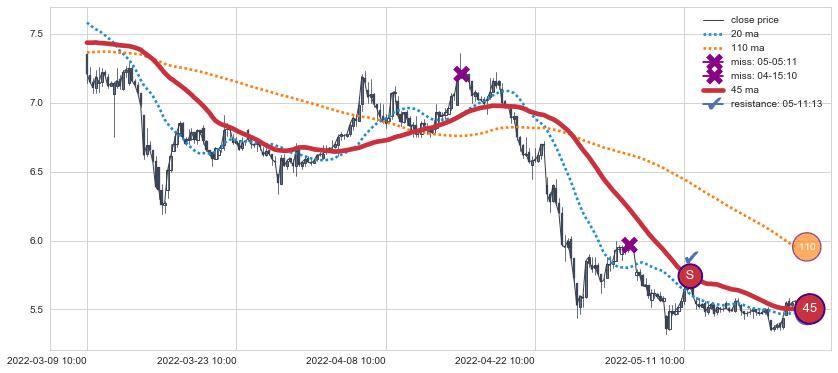⚃ 在破位点附近ma走势明显平稳迹象,稍后的走势中ma下垂迹象也出现,信号【可信度中等偏上】