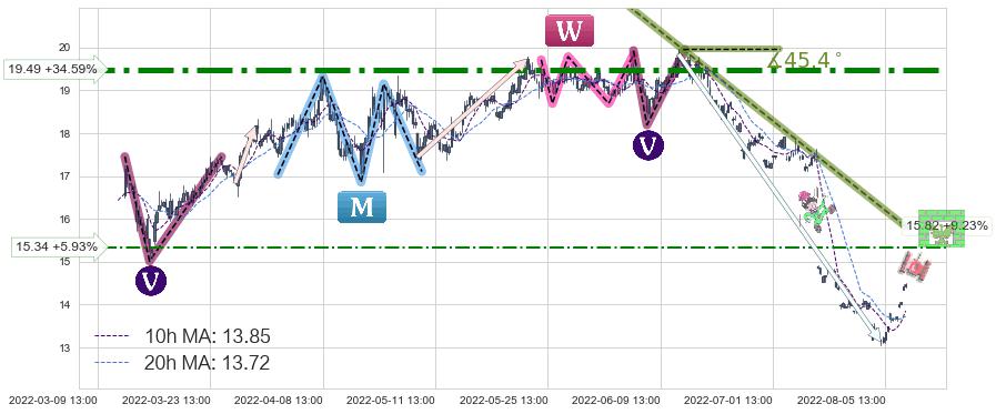 ♘ 阻力价格位19.49,可信任强度99.00%,距离最后交易2022-08-12 14:00形成的收盘价格14.48相差 +34.59%
