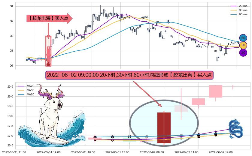 ⚀ 2022-06-02 09:00:00小时显现 20小时-30小时-60小时均线 【蛟龙出海】买入点 看多信号,后市看涨,买入