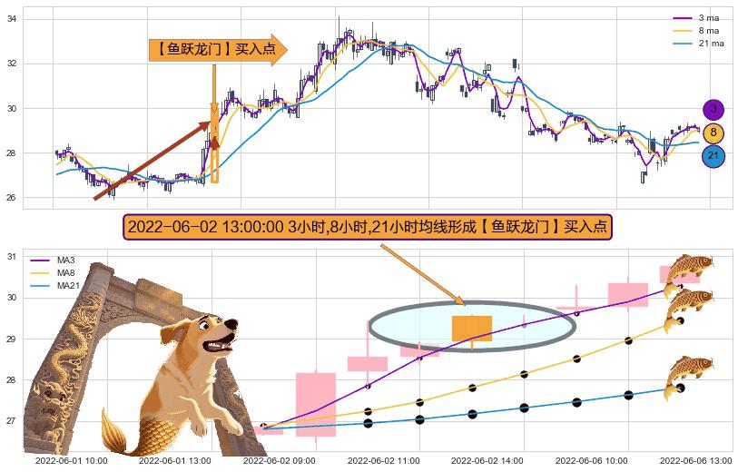 ⚀ 2022-06-02 13:00:00小时显现 3小时-8小时-21小时均线 【鱼跃龙门】买入点 看多信号,后市看涨,买入