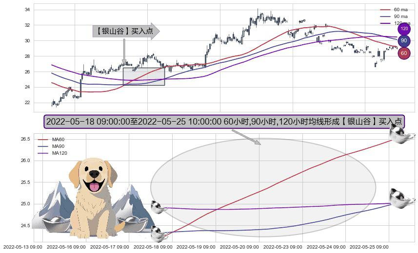⚀ 2022-05-18 10:00:00-小时至2022-05-25 10:00:00-小时显现 60小时-90小时-120小时均线 【银山谷】买入点 看多信号,后市看涨,买入