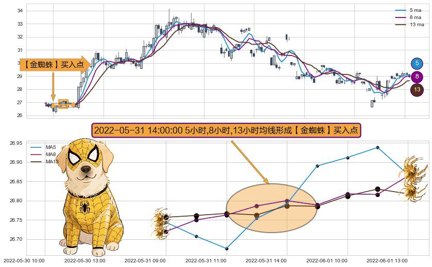 ⚀ 2022-05-31 14:00:00小时显现 5小时-8小时-13小时均线 【金蜘蛛】买入点 看多信号,后市看涨,买入