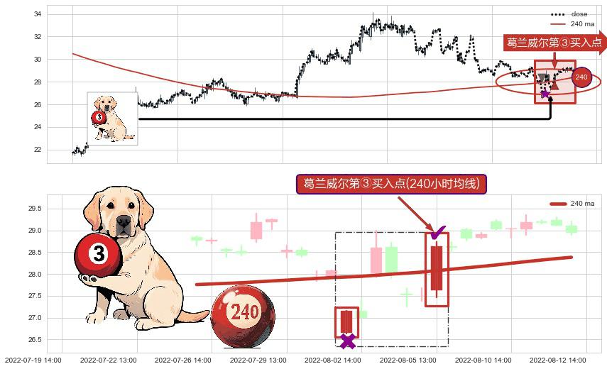 ⚀ 2022-08-05 13:00:00-小时显现 葛兰威尔均线 240小时均线 第③买入点 上升趋势的中继信号,后市看涨,买进信号