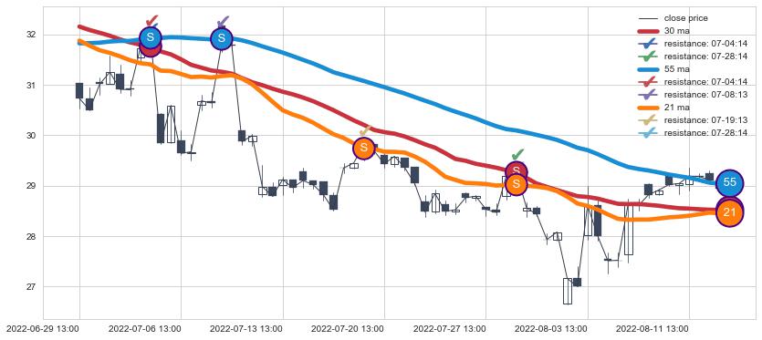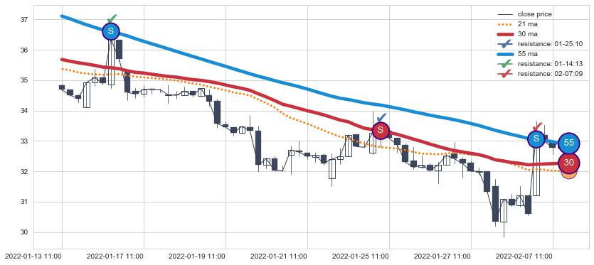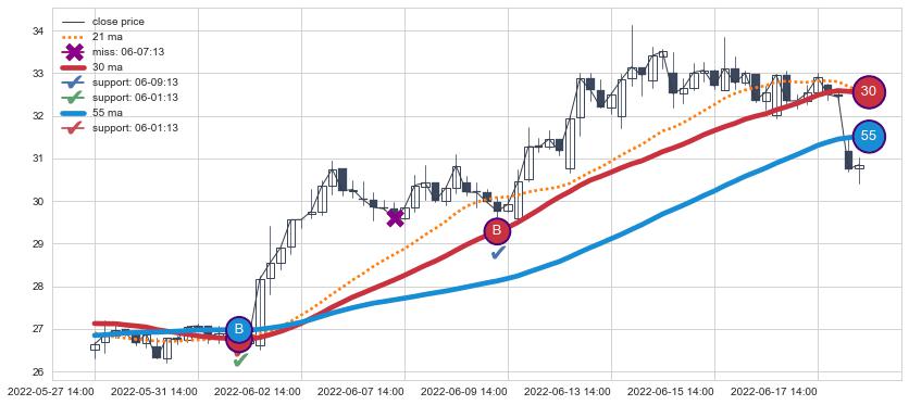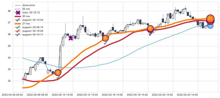 ⚃ 在破位点附近ma走势已有下垂迹象,稍后的走势中ma下降趋势明显,信号【可信度高】