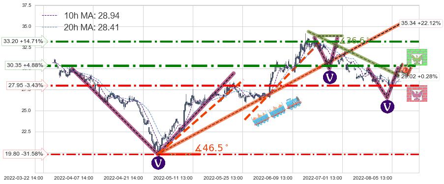 ♘ 阻力价格位30.35,可信任强度89.68%,距离最后交易2022-08-12 14:00形成的收盘价格28.94相差 +4.88%