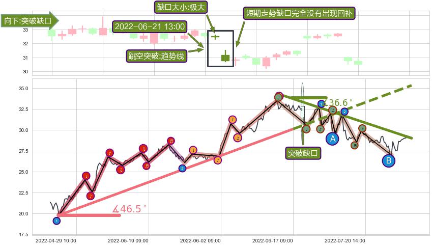 ➢ 2022-06-21 13:00形成:向下跳空【突破】缺口