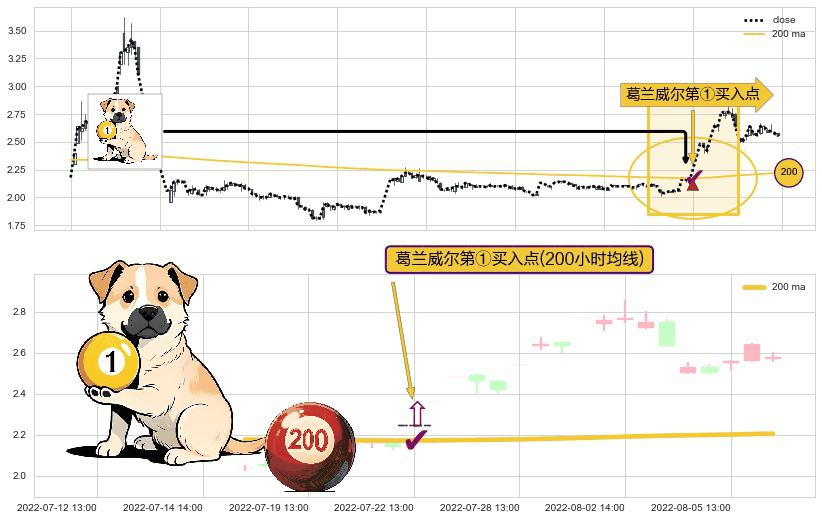 ⚀ 2022-07-22 13:00:00-小时显现 葛兰威尔均线 200小时均线 第买①入点 走势反转见底信号,后市看涨,买进信号