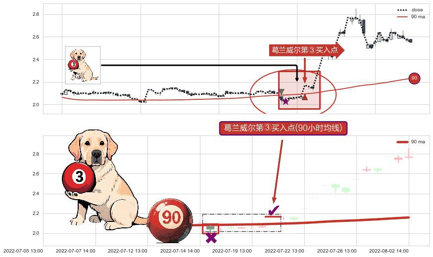 ⚀ 2022-07-20 13:00:00-小时显现 葛兰威尔均线 90小时均线 第③买入点 上升趋势的中继信号,后市看涨,买进信号