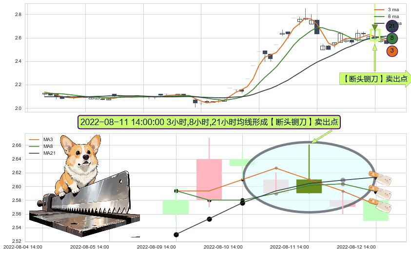 ⚀ 2022-08-11 14:00:00小时显现 3小时-8小时-21小时均线 【断头铡刀】卖出点 看空信号,后市看跌,卖出
