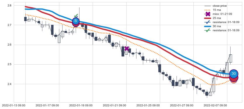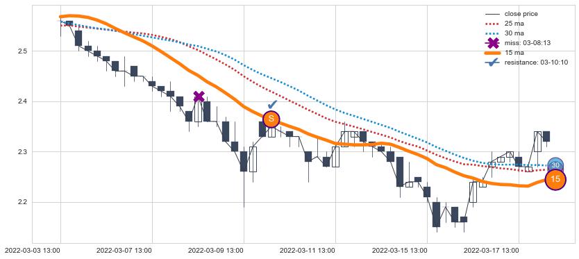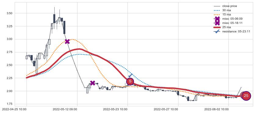 ⚂ 2022-07-04 14:00:00小时突然冒出一根大阳线,一下子顶穿三条均线且收盘价收在各条均线之上