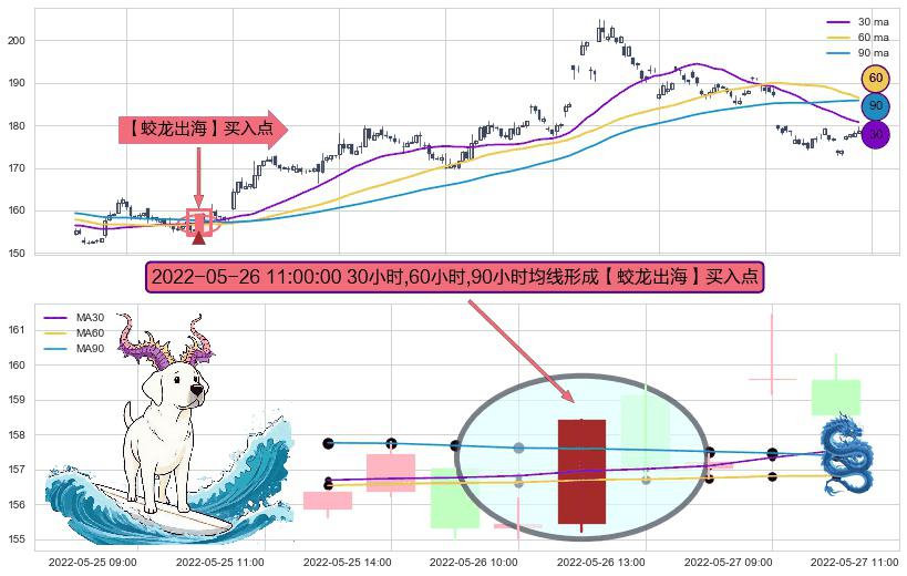 ⚀ 2022-05-26 11:00:00小时显现 30小时-60小时-90小时均线 【蛟龙出海】买入点 看多信号,后市看涨,买入