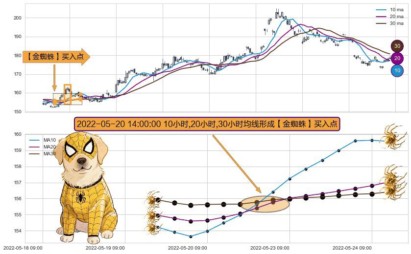 ⚀ 2022-05-20 14:00:00小时显现 10小时-20小时-30小时均线 【金蜘蛛】买入点 看多信号,后市看涨,买入