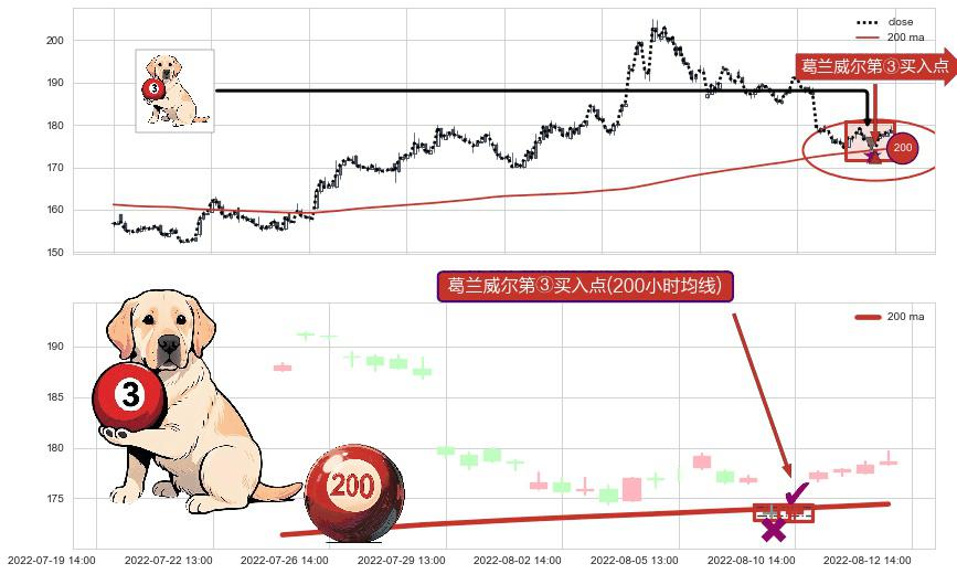⚀ 2022-08-10 14:00:00-小时显现 葛兰威尔均线 200小时均线 第③买入点 上升趋势的中继信号,后市看涨,买进信号