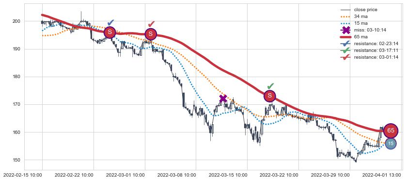 ⚂ 2022-07-28 13:00:00小时突然冒出一根大阴线,一下子下穿三条均线且收盘价收在各条均线之下
