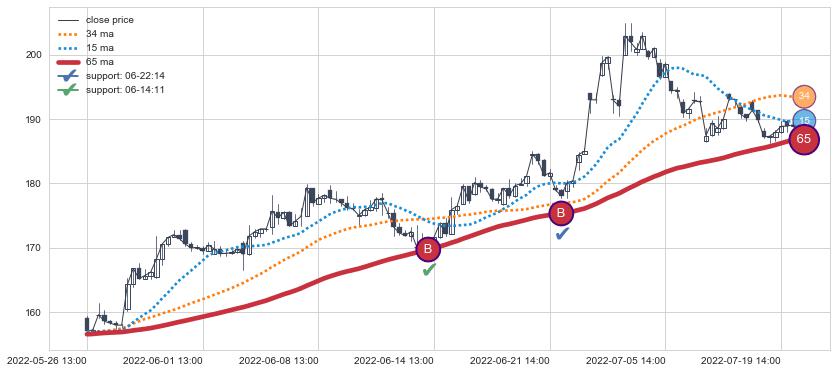 ⚄ 价格在均线获取支撑后再次向上反弹了【较短】距离, 第②买入点 支撑效果【仍需验证】