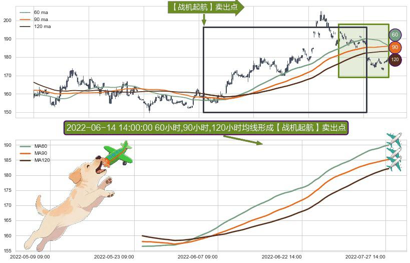 ⚀ 2022-05-24 09:00:00小时-2022-07-28 14:00:00小时显现 60小时-90小时-120小时均线 【战机起航】卖出点 看空信号,后市看跌,卖出