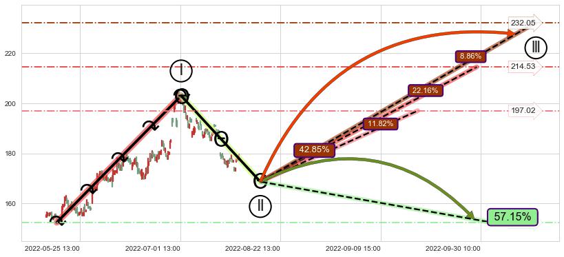 ➢ 大趋势走坏(跌破5浪起点位置)概率57.15%