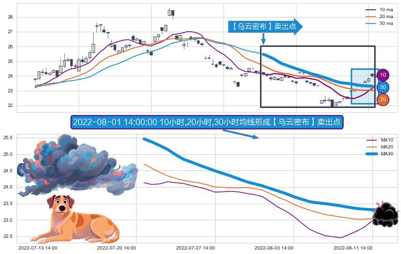 ⚀ 2022-07-21 13:00:00小时-2022-08-12 13:00:00小时显现 10小时-20小时-30小时均线 【乌云密布】卖出点 看空信号,后市看跌,卖出
