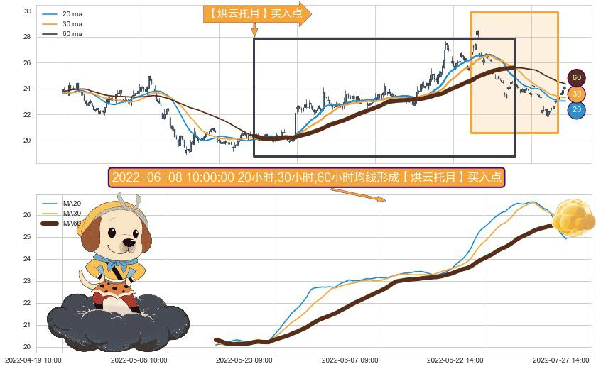 ⚀ 2022-05-12 14:00:00小时-2022-07-20 13:00:00小时显现 20小时-30小时-60小时均线 【烘云托月】买入点 看多信号,后市看涨,买入