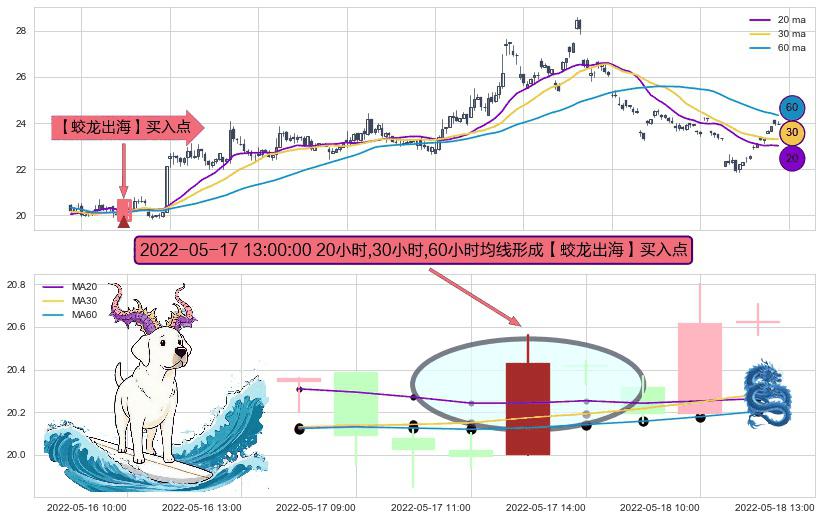 ⚀ 2022-05-17 13:00:00小时显现 20小时-30小时-60小时均线 【蛟龙出海】买入点 看多信号,后市看涨,买入
