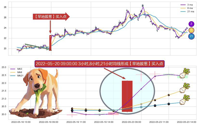 ⚀ 2022-05-20 09:00:00小时显现 3小时-8小时-21小时均线 【旱地拔葱】买入点 看多信号,后市看涨,买入
