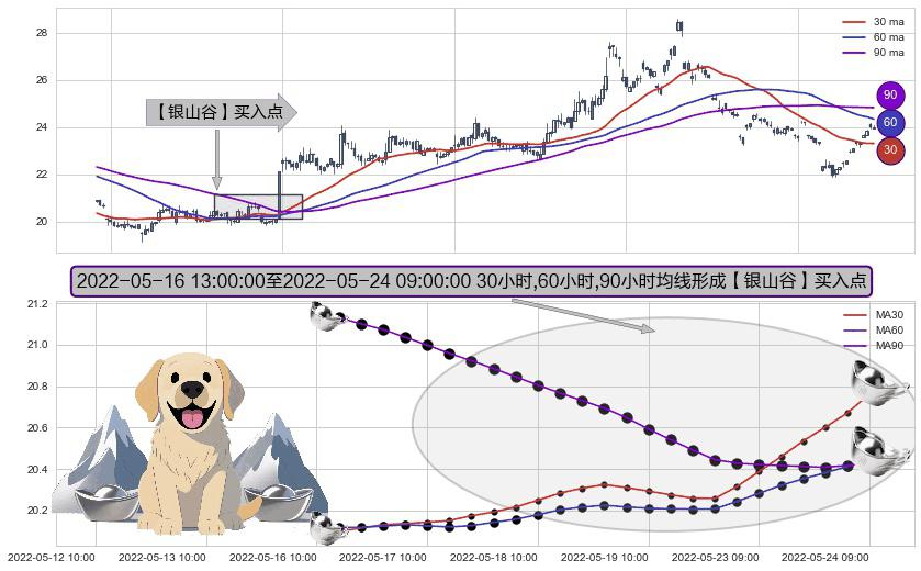⚀ 2022-05-16 14:00:00-小时至2022-05-24 09:00:00-小时显现 30小时-60小时-90小时均线 【银山谷】买入点 看多信号,后市看涨,买入